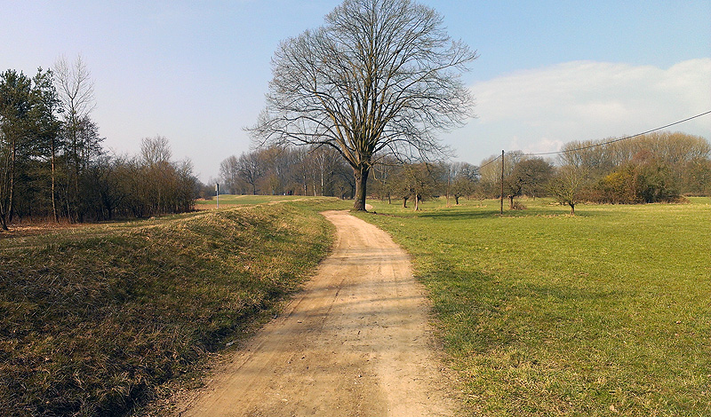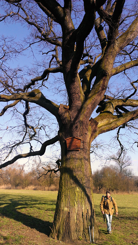 Dem Weg zu folgen ist denkbar einfach; immer noch geradeaus. Nun jedoch weht uns in der anderen Richtung der Wind entgegen und es wird trotz der Sonne kalt. Immerhin bleibt uns Zeit die ersten Knospen am Wegesrand zu entdecken. Wir passieren die Böhringer Eiche. Ein Bild von einem Baum. Wie muss es sein an einem lauen Sommerabend unter diesem Baum zu liegen und mit der Liebsten zu schmusen.